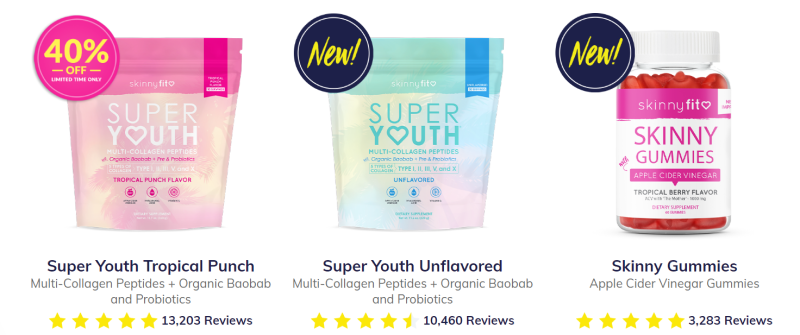 A variety of health and wellness products are available from SkinnyFit, such as: